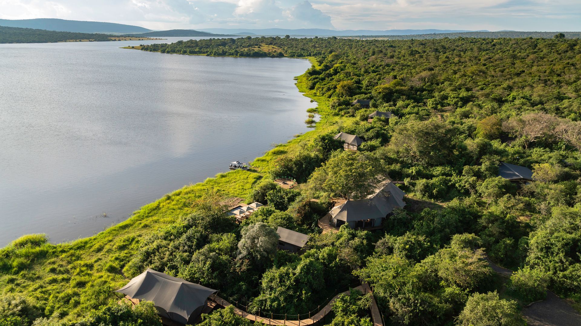 Days here are unhurried: drifting across the lake on boat safaris, following tracks on open plains, or simply watching the water from the pool deck. Evenings are quiet fireside moments, with hippos calling in the dark.